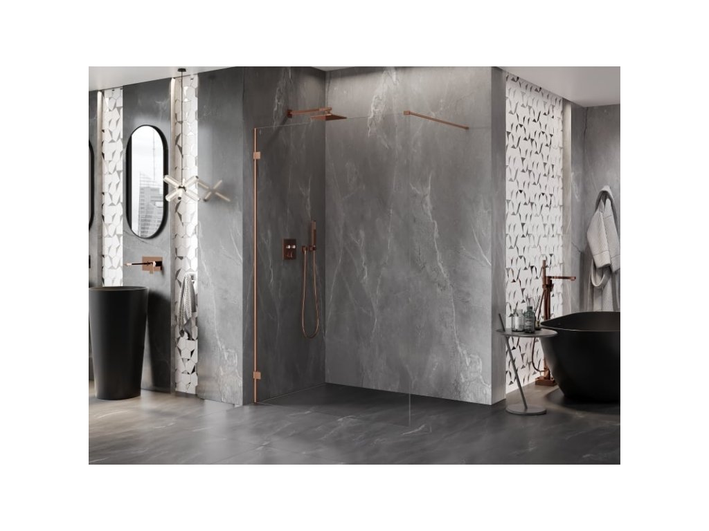 Mexen Lunar sprchová stena ľavá 130 x 200 cm, priehľadná 8 mm, brúsená meď - 830-130-000-65-00-L