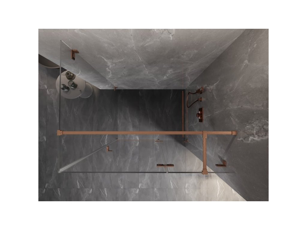 Mexen Lunar T pravý výklopný sprchový kút 140 x 120 cm, transparentný, brúsená meď - 834T-140-120-65-00-P