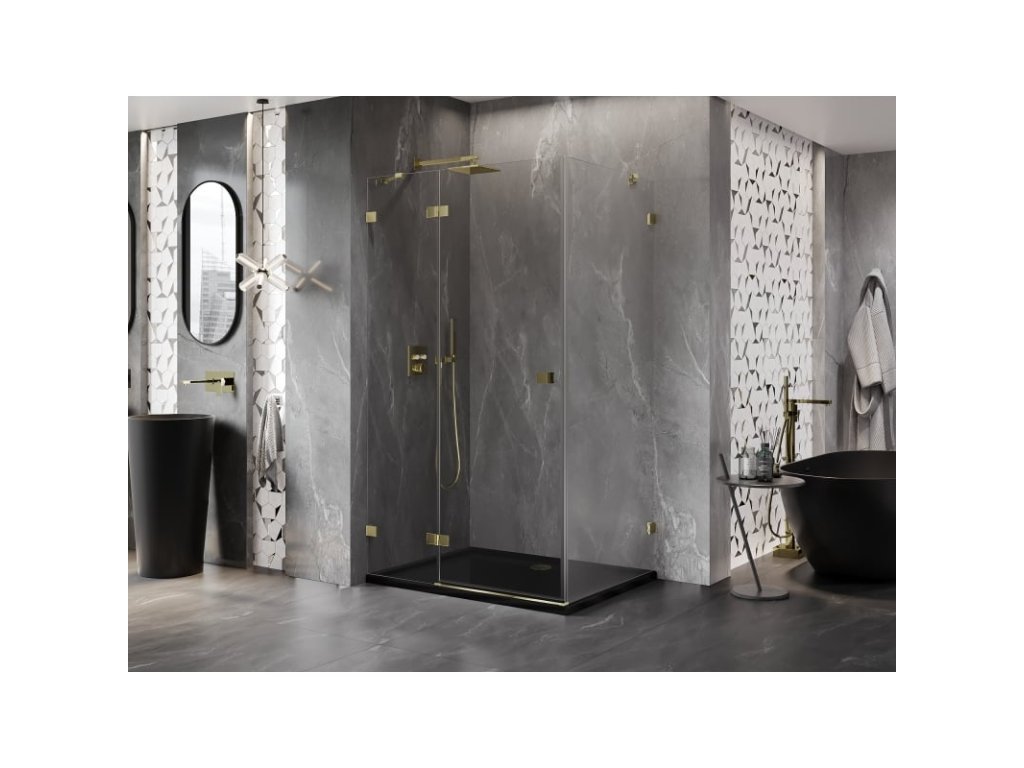 Mexen Lunar výklopný sprchový kút ľavý 90 x 70 cm, transparentný, zlatý - 834-090-070-50-00-L
