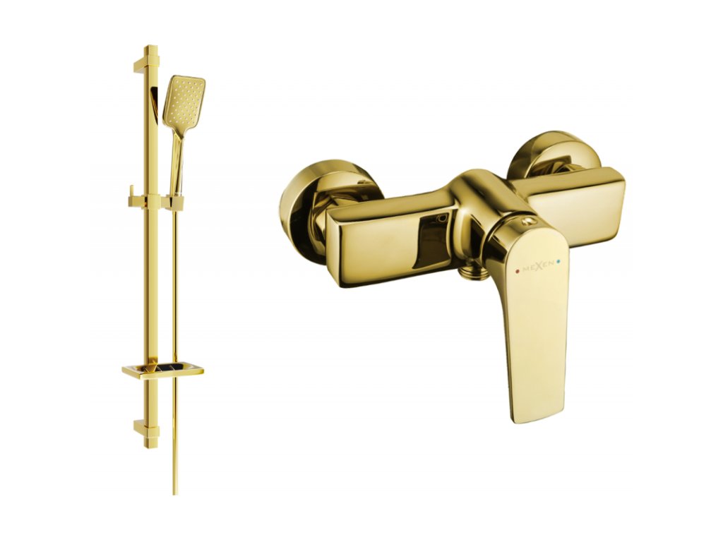 Mexen Lynx DQ62 sprchová batéria so sprchovou súpravou, zlatá - 74594DQ62-50