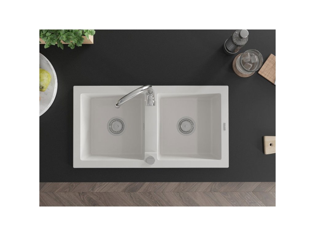 Mexen Mario drez granitový 2-komorový 820 x 436 mm, biely - 6504822000-20