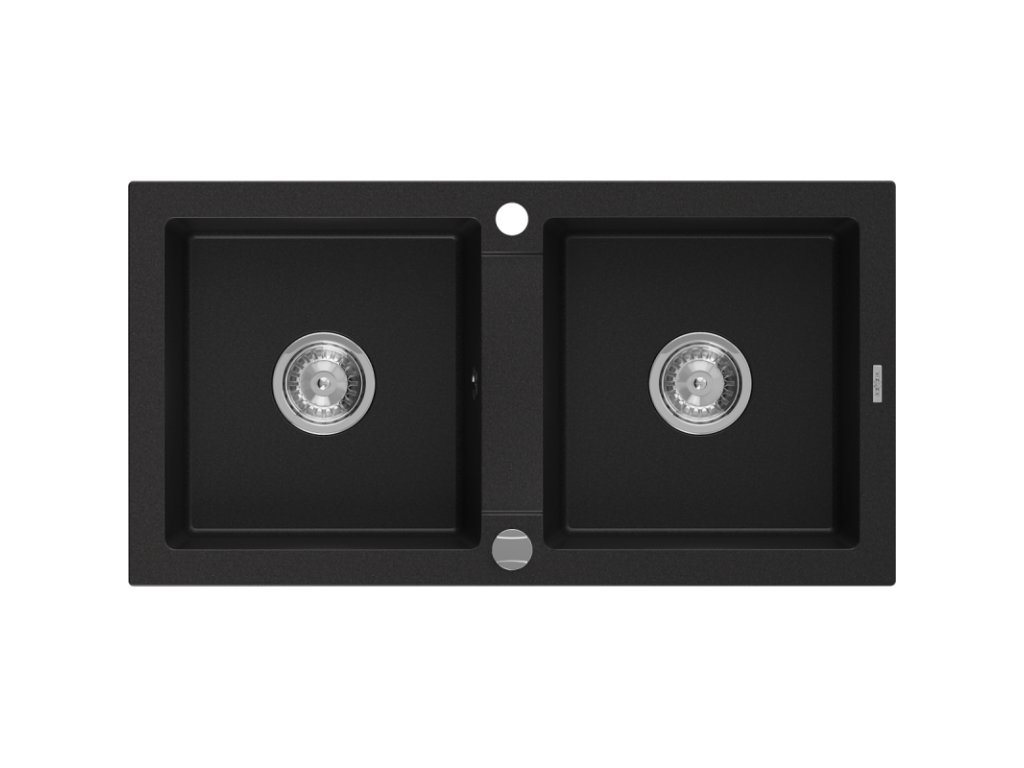 \nTechnické údaje: \n \nrozmery: 820x436x161 mm \n \nhĺbka komory: 151 mm \n \nrozmery komory: 356x336 mm \n \npriemer odtoku: ø90 mm \n \nModel: 2-komorový \n \ntyp: zapustené do pracovnej dosky \n \nfarba: čierny \n \nmateriál: žula \n \nprepadový otvor: áno \n \notvor pre batériu: áno \n \nautomatický sifón v sade \n \nvysoká odolnosť proti poškriabaniu a zafarbeniu \n \nodolnosť proti tepelným šokom \n \npovrch pre ľahké čistenieDodatočné parametre