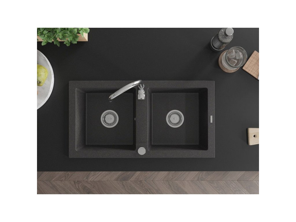 \nTechnické údaje: \n \nrozmery: 820x436x161 mm \n \nhĺbka komory: 151 mm \n \nrozmery komory: 356x336 mm \n \npriemer odtoku: ø90 mm \n \nModel: 2-komorový \n \ntyp: zapustené do pracovnej dosky \n \nfarba: čierny škvrnitý \n \nmateriál: žula \n \nprepadový otvor: áno \n \notvor pre batériu: áno \n \nautomatický sifón v sade \n \nvysoká odolnosť proti poškriabaniu a zafarbeniu \n \nodolnosť proti tepelným šokom \n \npovrch pre ľahké čistenieDodatočné parametre