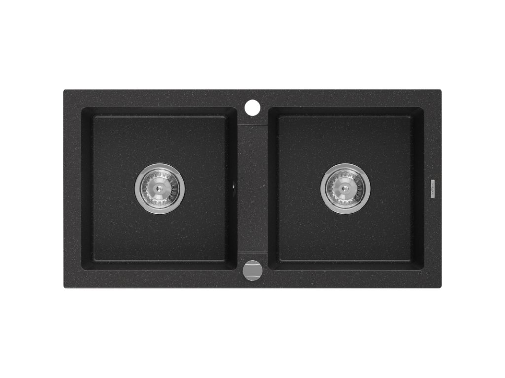 \nTechnické údaje: \n \nrozmery: 820x436x161 mm \n \nhĺbka komory: 151 mm \n \nrozmery komory: 356x336 mm \n \npriemer odtoku: ø90 mm \n \nModel: 2-komorový \n \ntyp: zapustené do pracovnej dosky \n \nfarba: čierny/strieborná metalíza \n \nmateriál: žula \n \nprepadový otvor: áno \n \notvor pre batériu: áno \n \nautomatický sifón v sade \n \nvysoká odolnosť proti poškriabaniu a zafarbeniu \n \nodolnosť proti tepelným šokom \n \npovrch pre ľahké čistenieDodatočné parametre