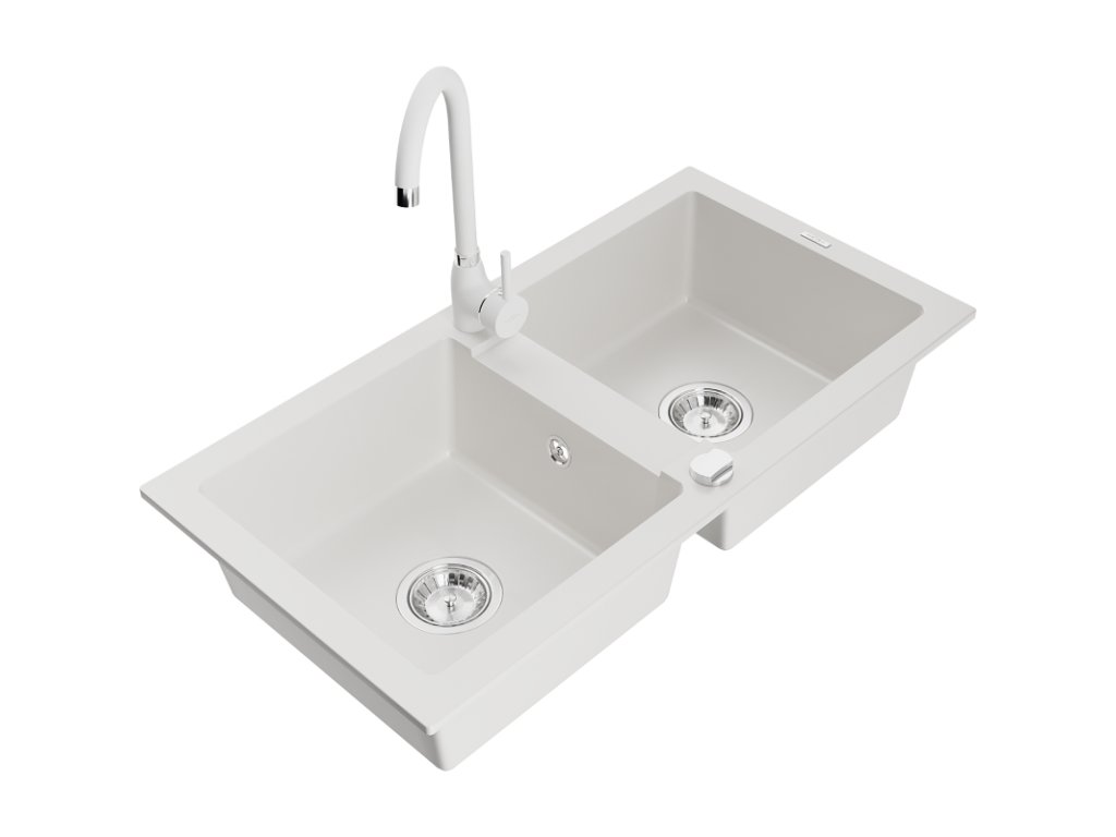 Mexen Mario drez granitový 2-komorový + batéria Telma, biely - 6504-20-670200-20