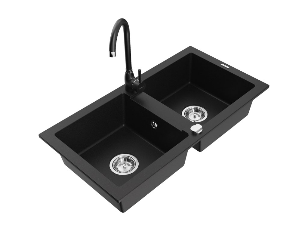 Mexen Mario drez granitový 2-komorový + batéria Telma, čierny - 6504-77-670200-70