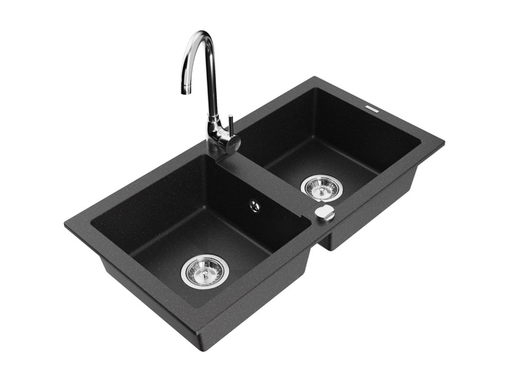 Mexen Mario drez granitový 2-komorový + batéria Telma, čierny/strieborný - 6504-73-670200-00