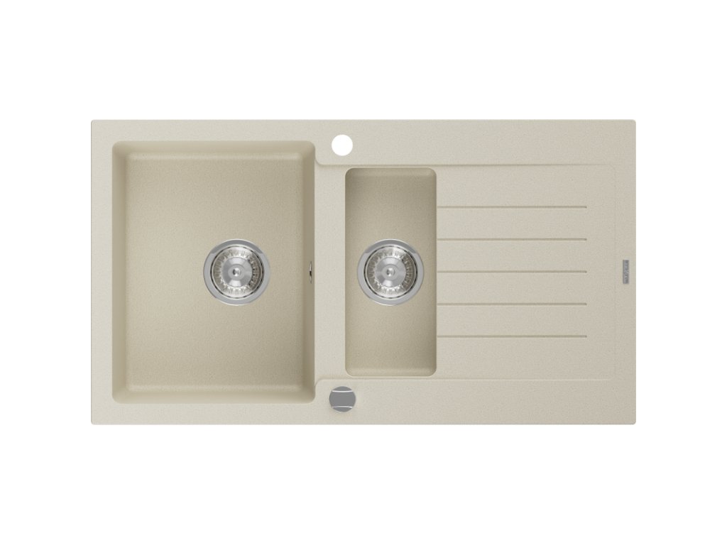 \nTechnické údaje: \n \nrozmery: 900x505x200 mm \n \nhĺbka komory: 180 mm (väčšia), 115 mm (menšia) \n \nrozmery komory: 435x335 mm (väčšia), 345x150 mm (menšia) \n \npriemer odtoku: ø90 mm \n \nModel: 1,5-komorový s krátkym odkvapkávačom \n \ntyp: zapustené do pracovnej dosky \n \nfarba: béžový \n \nmateriál: žula \n \nprepadový otvor: áno \n \notvor pre batériu: áno \n \nautomatický sifón v sade \n \nvysoká odolnosť proti poškriabaniu a zafarbeniu \n \nodolnosť proti tepelným šokom \n \npovrch pre ľahké čistenie \n \n2 predvŕtané otvory pre vlastné dierovanie ø35Dodatočné parametre