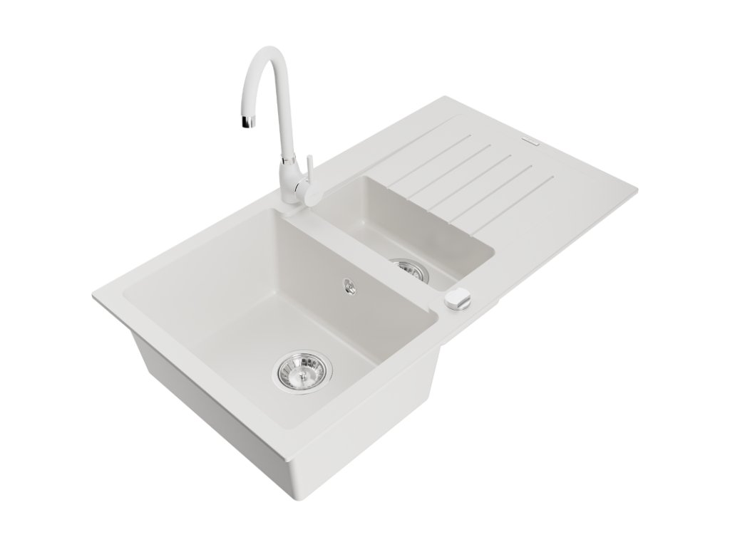 Mexen Matias drez granitový 1,5-komorový s odkvapkávačom + batéria Telma, biely - 6502-20-670200-20