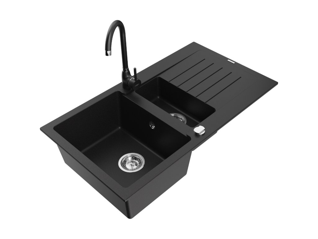 Mexen Matias drez granitový 1,5-komorový s odkvapkávačom + batéria Telma, čierny - 6502-77-670200-70