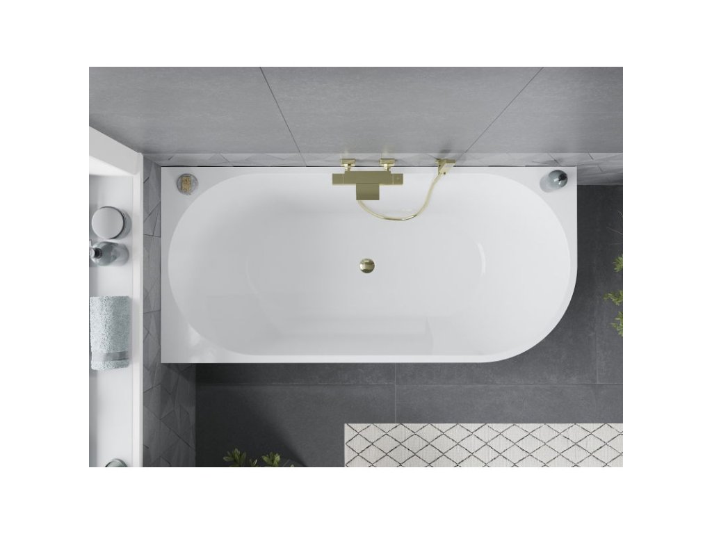 Mexen Mia voľne stojaca rohová vaňa ľavá 140 x 75 cm, biela, zlatý prepad - 52691407500L-50