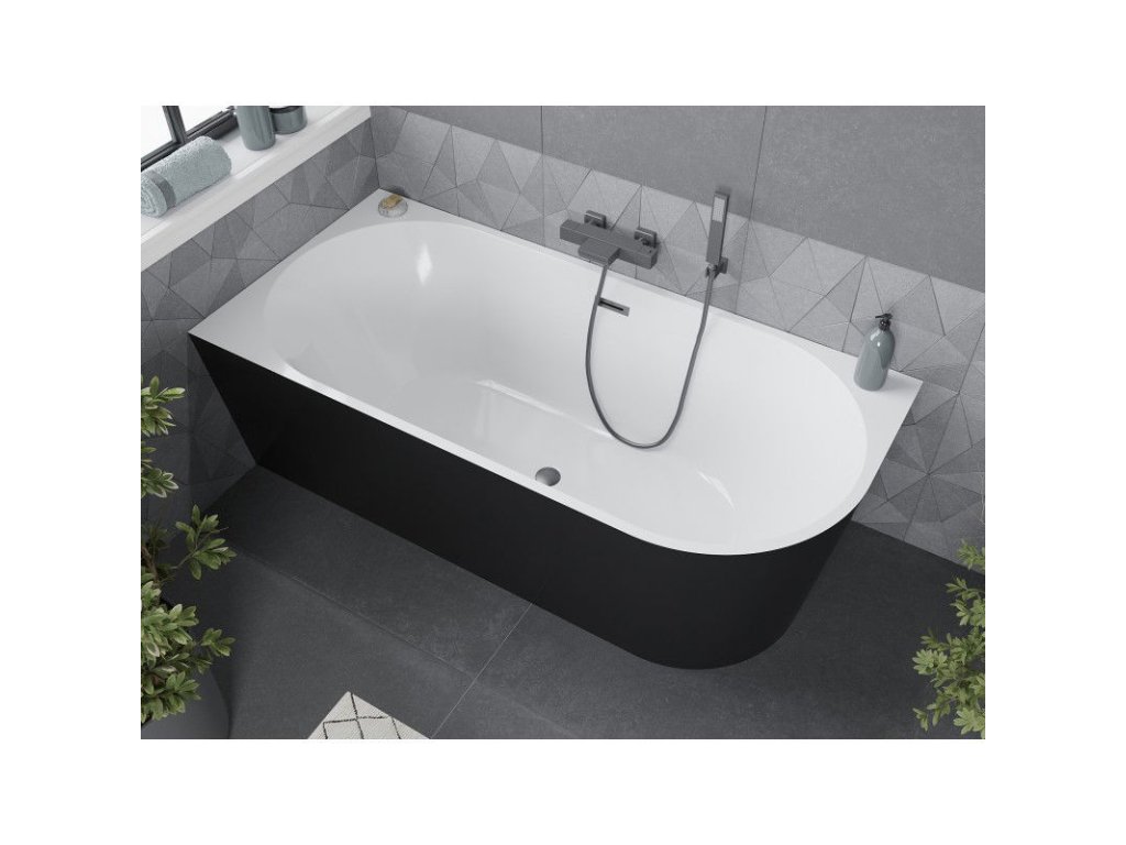 Mexen Mia voľne stojaca rohová vaňa ľavá 140 x 75 cm, biela/čierna, prepad sivý kartáčovaný - 52691407575L-66
