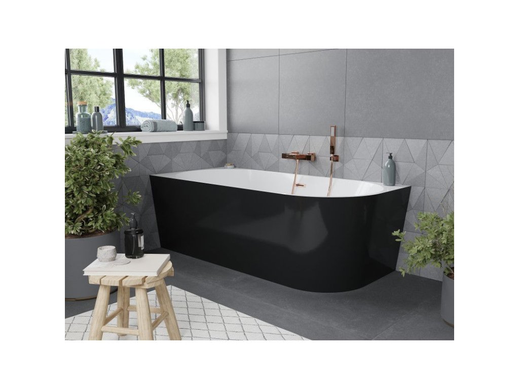 Mexen Mia voľne stojaca rohová vaňa ľavá 150 x 75 cm, biela/čierna, prepad brúsená meď - 52691507575L-65
