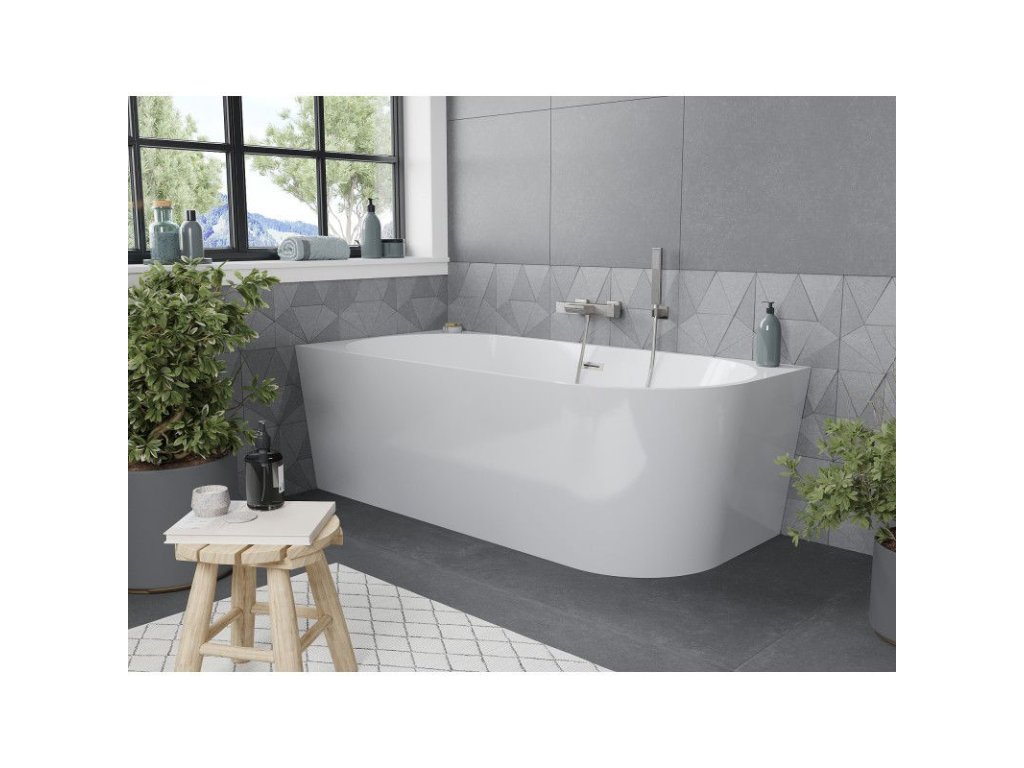 Mexen Mia voľne stojaca rohová vaňa ľavá 160 x 75 cm, biela, prepad brúsený nikel - 52691607500L-97