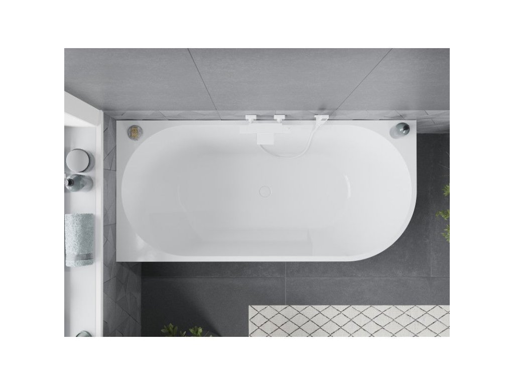 Mexen Mia je elegantná voľne stojaca rohová vaňa, ideálna do moderných kúpeľní. Jej rozmery 160 x 75 cm a výška 58 cm zaručujú pohodlie. Je vyrobená zo sanitárneho akrylátu, je odolná voči dechtovaniu a UV žiareniu, čo zaručuje jej trvanlivosť a jednoduchú údržbu. Vďaka bielej a čiernej farbe v kombinácii s lesklým povrchom vaňa dokonale zapadne do estetiky každého interiéru. Súčasťou balenia je sifón a zátka s kliknutím na klapku, ktoré uľahčujú inštaláciu.Dodatočné parametre