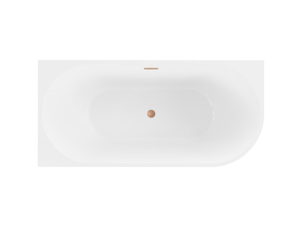 Mexen Mia voľne stojaca rohová vaňa ľavá 160 x 80 cm, biela/čierna, prepad brúsená meď - 52691608075L-65