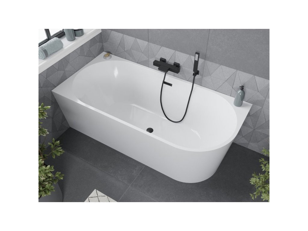 Mexen Mia je jedinečná rohová voľne stojaca vaňa s rozmermi 180 x 80 cm, vytvorená s ohľadom na pohodlie a moderný dizajn. Je vyrobená zo sanitárneho akrylátu, ktorý poskytuje trvanlivosť a odolnosť proti zmatneniu a UV žiareniu. Jej elegantná biela farba v kombinácii s čiernym povrchom dodá kúpeľni štýlový nádych. Vaňa má prepadový otvor a elegantný sifón v čiernej farbe, čo zvyšuje jej estetický dojem. Ideálna na vytvorenie moderného a funkčného priestoru na kúpanie.Dodatočné parametre