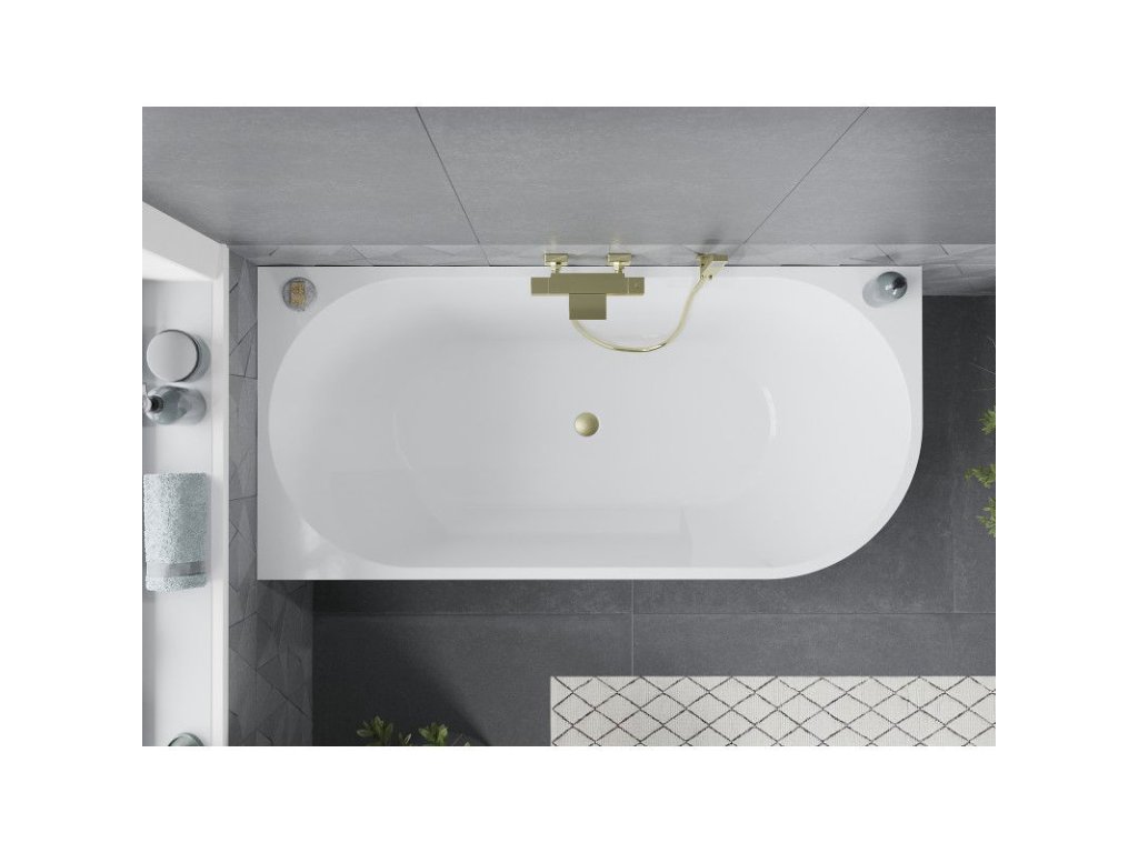 Mexen Mia voľne stojaca rohová vaňa ľavá 180 x 80 cm, biela, zlatý kartáčovaný prepad - 52691808000L-55