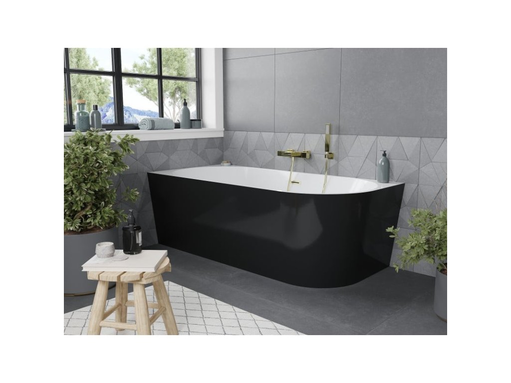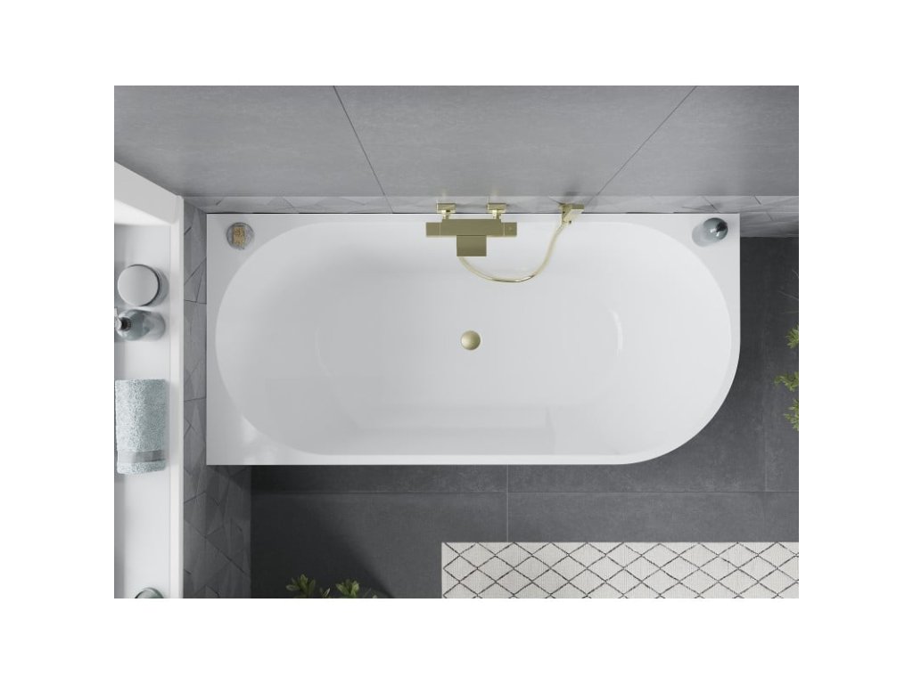 Mexen Mia voľne stojaca rohová vaňa ľavá 180 x 80 cm, biela/čierna, prepad brúsené zlato - 52691808075L-55