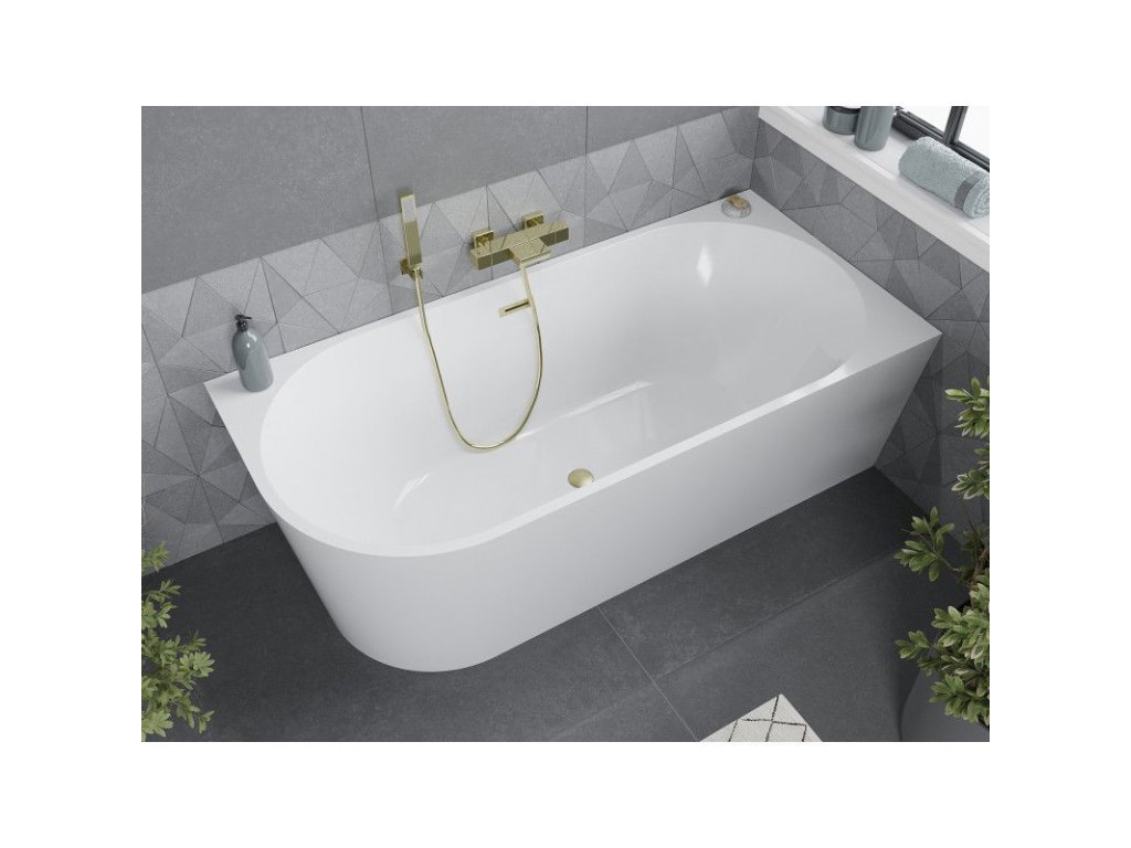 Mexen Mia je elegantná voľne stojaca vaňa s rozmermi 160 x 75 cm, ideálna do moderných kúpeľní. Vysoká kvalita sanitárneho akrylátu zaručuje trvanlivosť a odolnosť proti zmatneniu. Jej luxusná biela farba v kombinácii so zlatou kartáčovanou povrchovou úpravou jej dodáva jedinečný štýl. Vaňa je navrhnutá ako rohová, čo šetrí miesto. Prepadový otvor a priložený sifón so zátkou click clack zvyšujú komfort používania.Dodatočné parametre