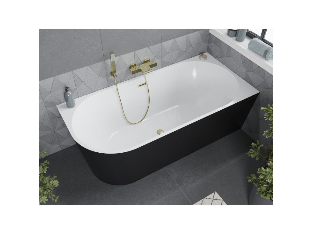 Mexen Mia je úžasná rohová voľne stojaca vaňa s rozmermi 160 x 75 cm, ideálna do moderných kúpeľní. Je vyrobená zo sanitárneho akrylátu, ktorý poskytuje trvanlivosť a odolnosť proti zmatneniu a UV žiareniu. Jej elegantná čierno-biela farba v kombinácii so zlatou kartáčovanou povrchovou úpravou jej dodáva jedinečný vzhľad. Prepadový otvor a priložený sifón so zátkou click clack zvyšujú funkčnosť, zatiaľ čo obdĺžnikový tvar vane dodáva štýl každému interiéru.Dodatočné parametre