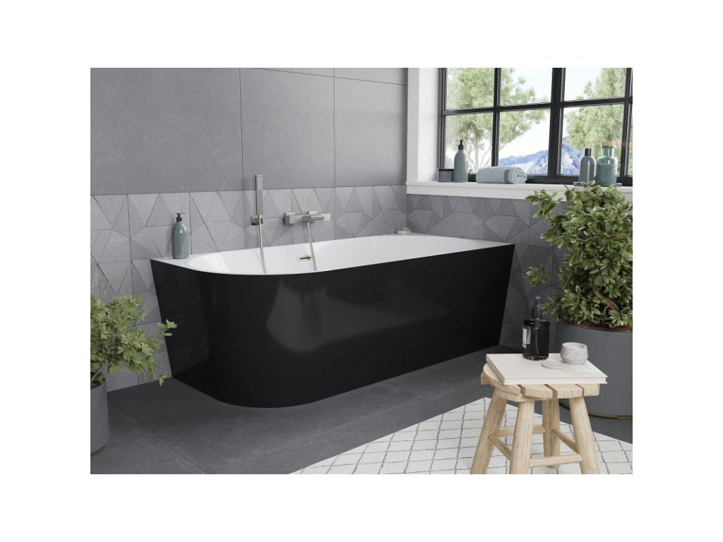 Mexen Mia voľne stojaca rohová vaňa pravá 160 x 80 cm, biela/čierna, prepad brúsený nikel - 52691608075P-97