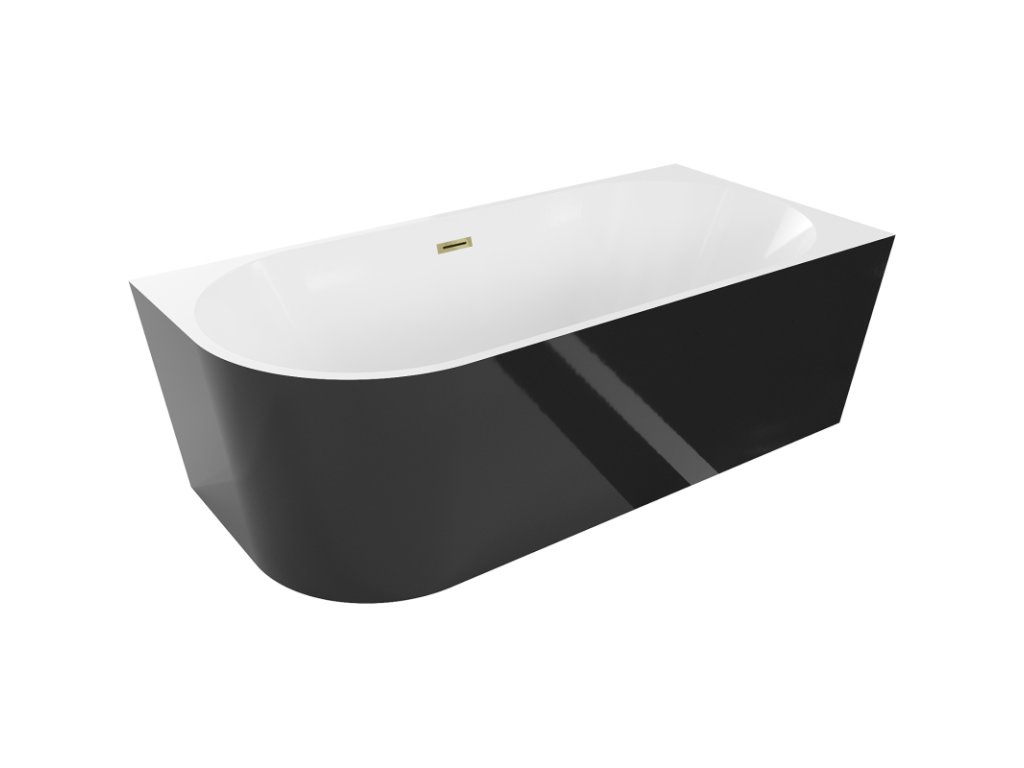 Mexen Mia voľne stojaca rohová vaňa pravá 160 x 80 cm, biela/čierna, zlatý prepad - 52691608075P-50