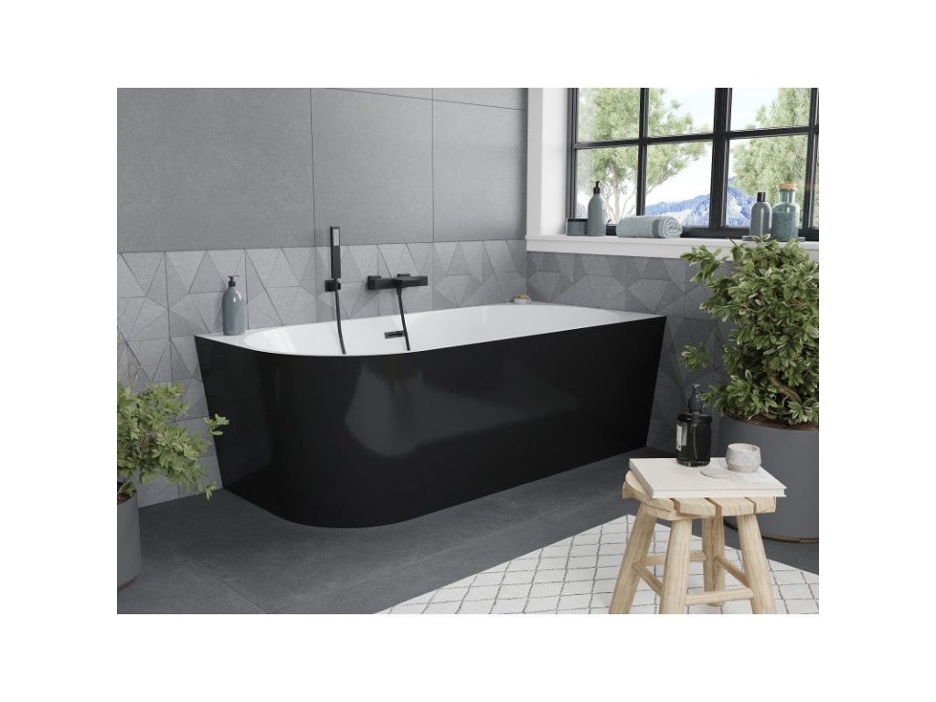 Mexen Mia voľne stojaca rohová vaňa pravá 170 x 80 cm, biela/čierna, prepad čierny - 52691708075P-70