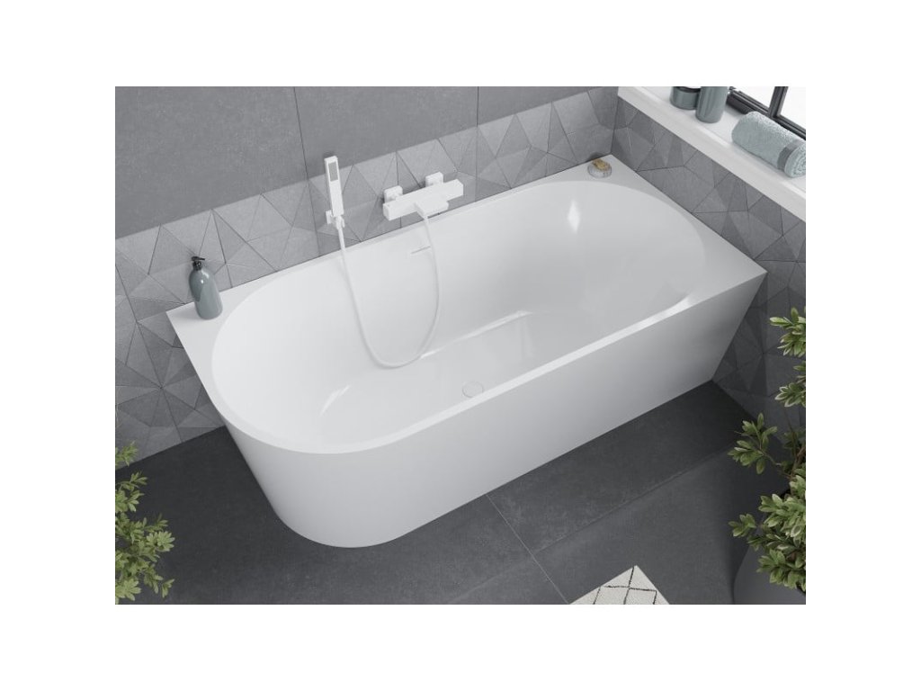 Mexen Mia je elegantná voľne stojaca rohová vaňa s rozmermi 180 x 80 cm, ktorá dokonale zapadne do každej kúpeľne. Je vyrobená z vysokokvalitného sanitárneho akrylátu a vyznačuje sa odolnosťou proti zmatneniu a UV žiareniu. Biela farba a lesklý povrch jej dodávajú eleganciu. Vaňa má prepadový otvor a je určená na inštaláciu do rohu na pravej strane. Súčasťou balenia je sifón a zacvakávacia zátka, ktoré zabezpečujú úplnú prípravu vane na inštaláciu.Dodatočné parametre