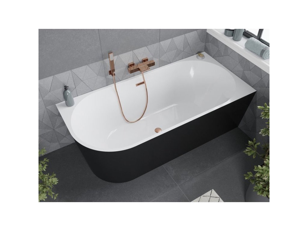 Mexen Mia voľne stojaca rohová vaňa pravá 180 x 80 cm, biela/čierna, prepad brúsená meď - 52691808075P-65