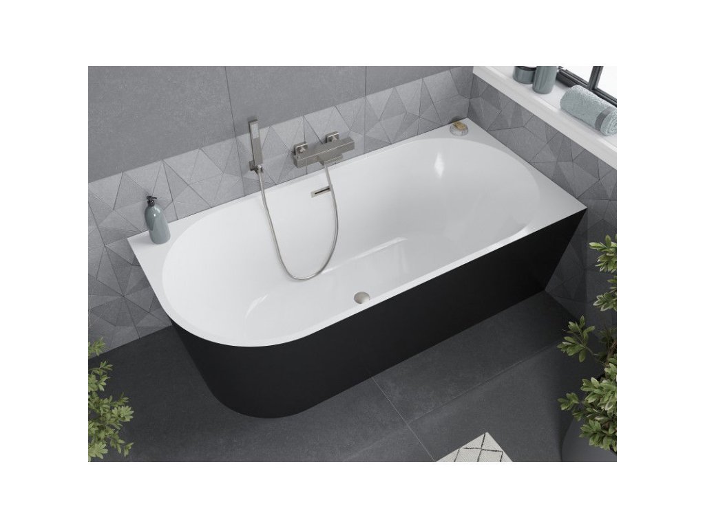 Mexen Mia je elegantná voľne stojaca vaňa s rozmermi 180 x 80 cm, určená na pravostrannú rohovú inštaláciu. Je vyrobená z kvalitného sanitárneho akrylátu a spája v sebe moderný dizajn v bielej a čiernej farbe s funkčnosťou. Je odolná voči zmatneniu a UV žiareniu, čo zaručuje jej dlhodobé používanie. Povrchová úprava z brúseného niklu dodáva luxusný nádych a v balení nájdete sifón a click clack zástrčku na jednoduchú inštaláciu a každodenné používanie.Dodatočné parametre