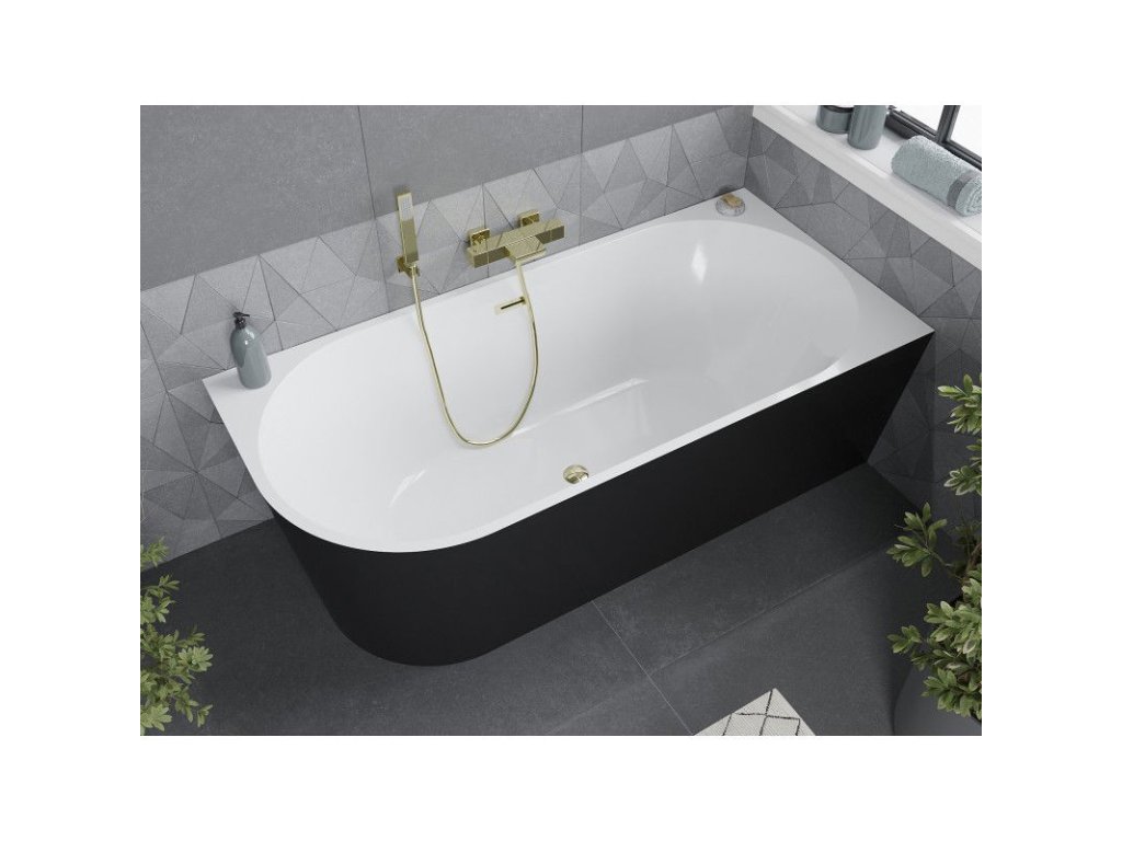 Mexen Mia voľne stojaca rohová vaňa pravá 180 x 80 cm, biela/čierna, zlatý prepad - 52691808075P-50
