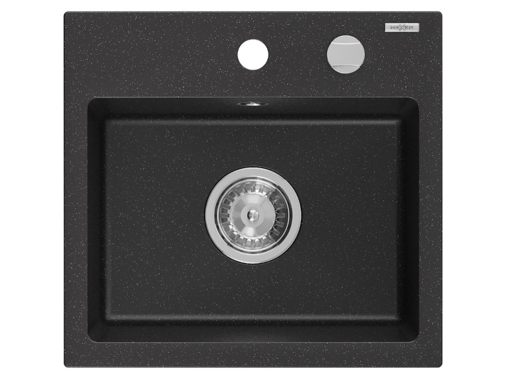 Mexen Milo drez granitový 1-komorový 435 x 410 mm, čierny/strieborná metalíza - 6505441000-73
