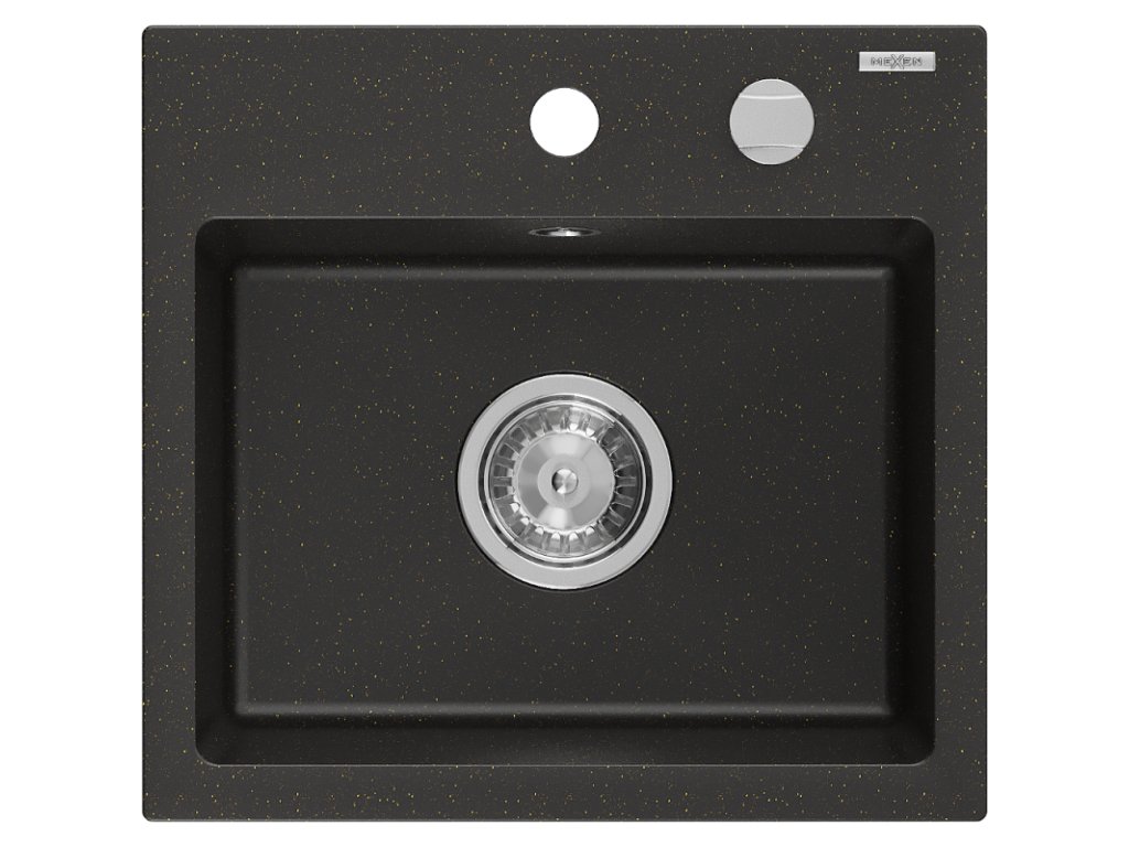 Mexen Milo drez granitový 1-komorový 435 x 410 mm, čierny/zlatá metalíza - 6505441000-75