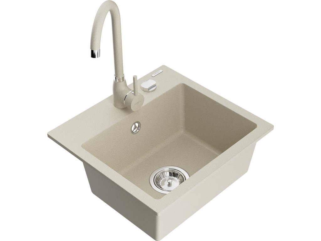 Mexen Milo drez granitový 1-komorový + batéria Telma, béžový - 6505-69-670200-69