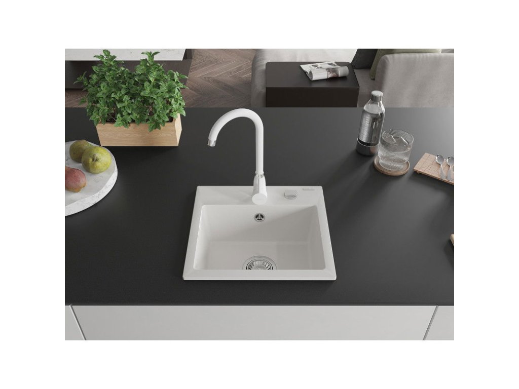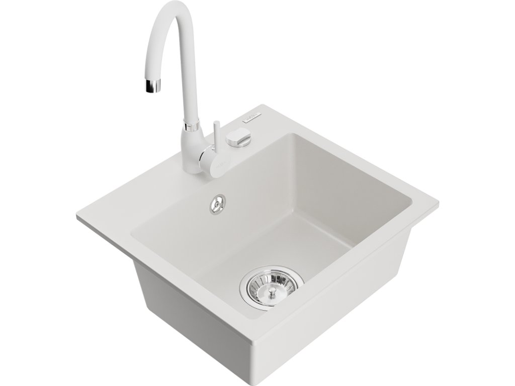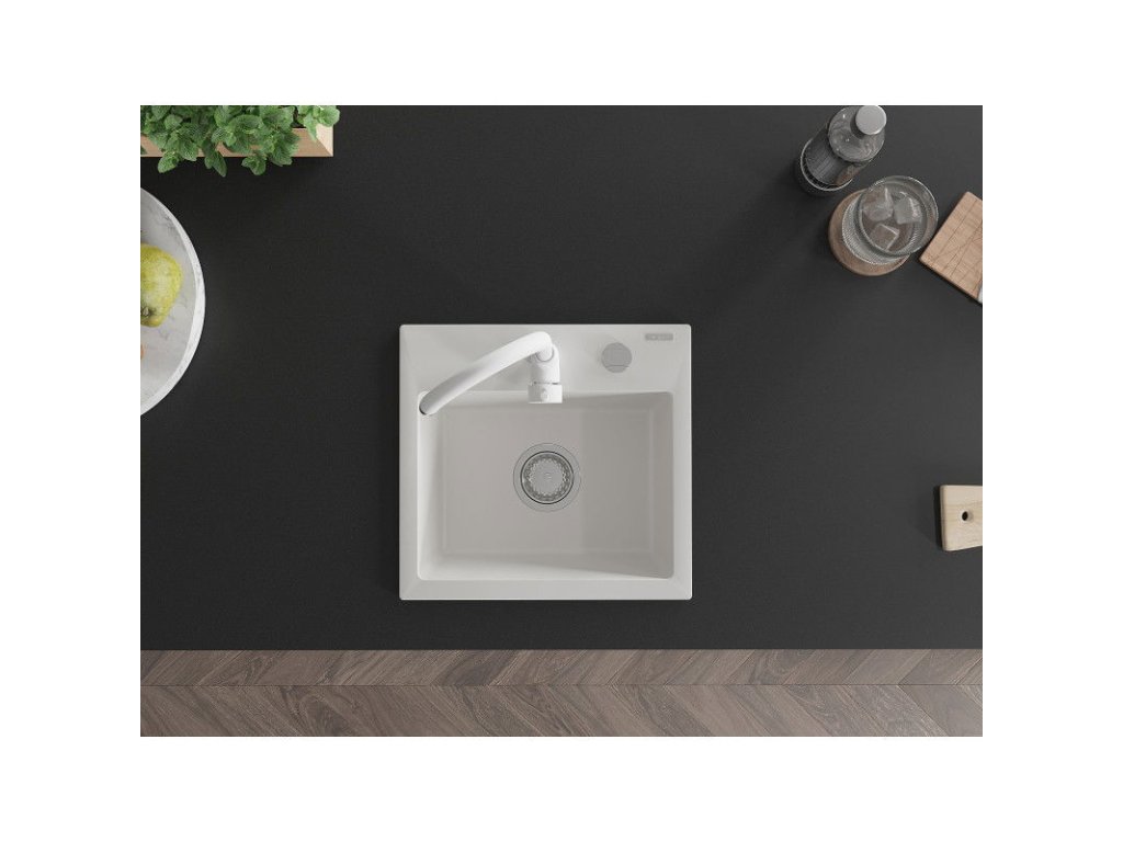 Mexen Milo drez granitový 1-komorový + batéria Telma, biely - 6505-20-670200-20