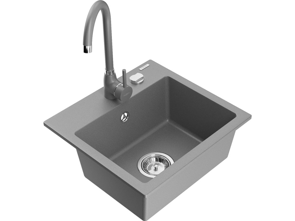 Mexen Milo drez granitový 1-komorový + batéria Telma, šedý - 6505-71-670200-71