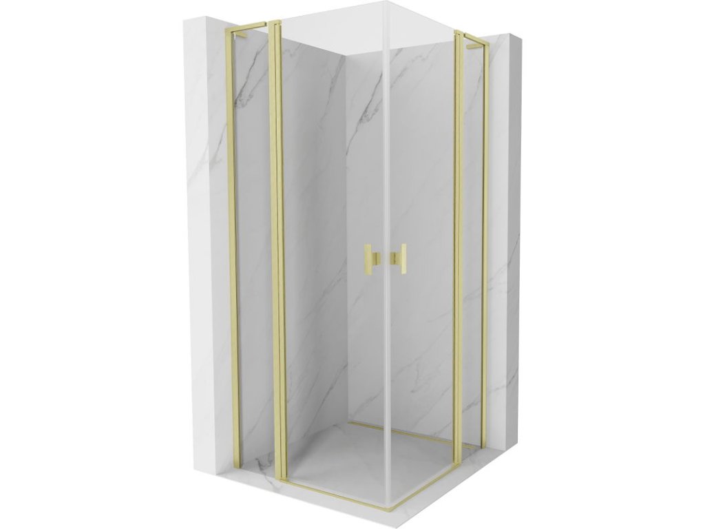 Mexen Mist L Duo sklápací sprchový kút 105 x 105 cm, transparentný, brúsené zlato - 8A4L-105-105-55-00