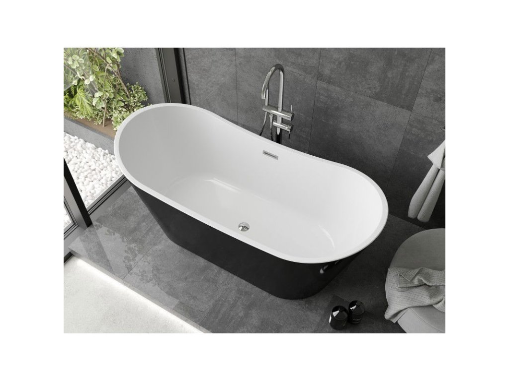 Mexen Montana voľne stojaca vaňa 150 x 75 cm, biela/čierna, prepad chróm - 52011507575-01