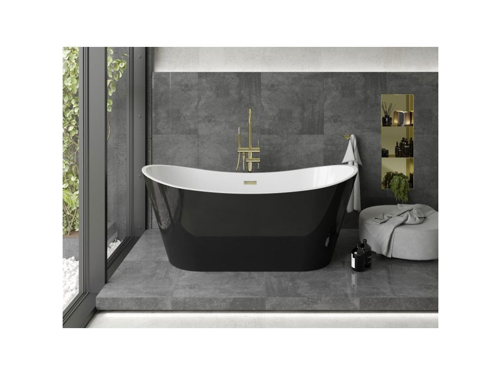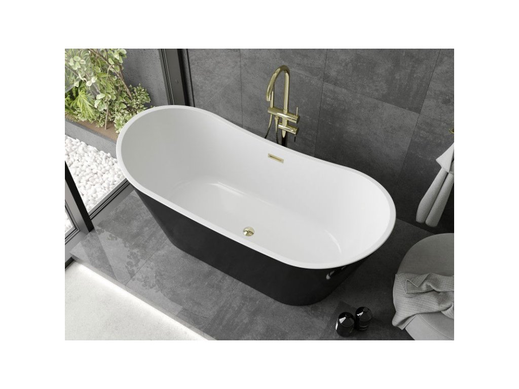 Mexen Montana voľne stojaca vaňa 150 x 75 cm, biela/čierna, zlatý prepad - 52011507575-50