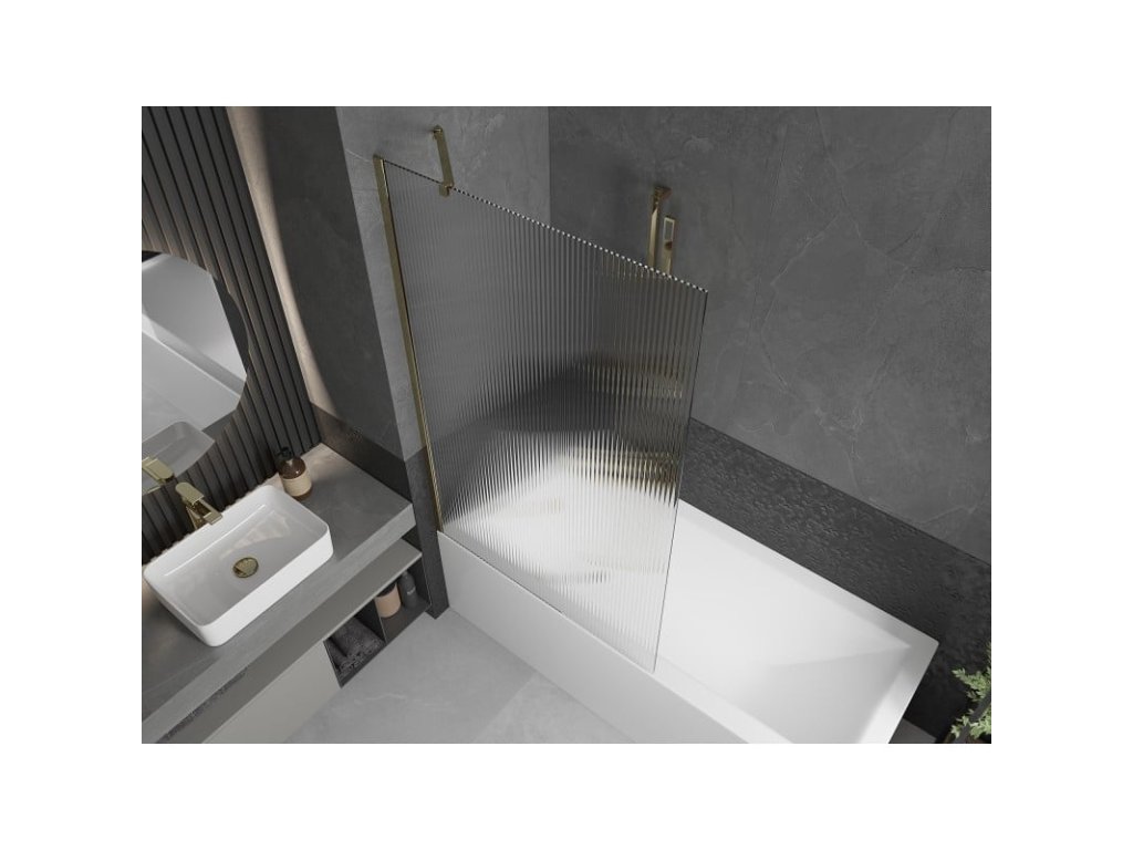 Mexen Next 1-krídlová vaňová zástena 100 x 150 cm, pruhovaná, zlatá - 895-100-000-00-09-50