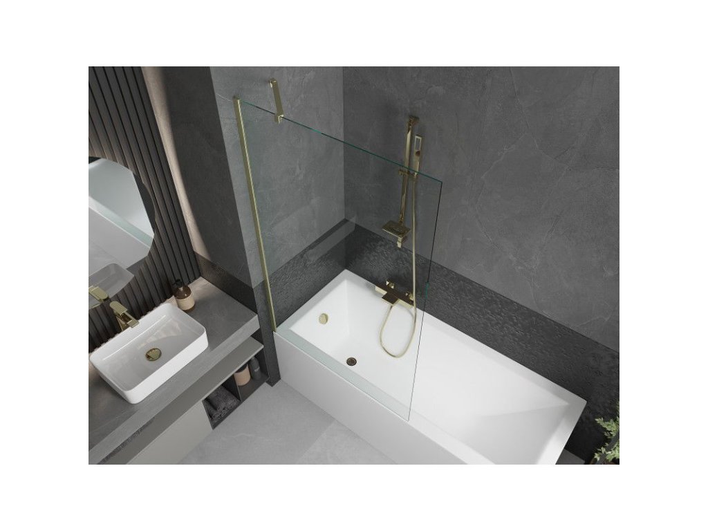 Mexen Next 1-krídlová vaňová zástena 100 x 150 cm, transparentná, brúsené zlato - 895-100-000-00-00-55