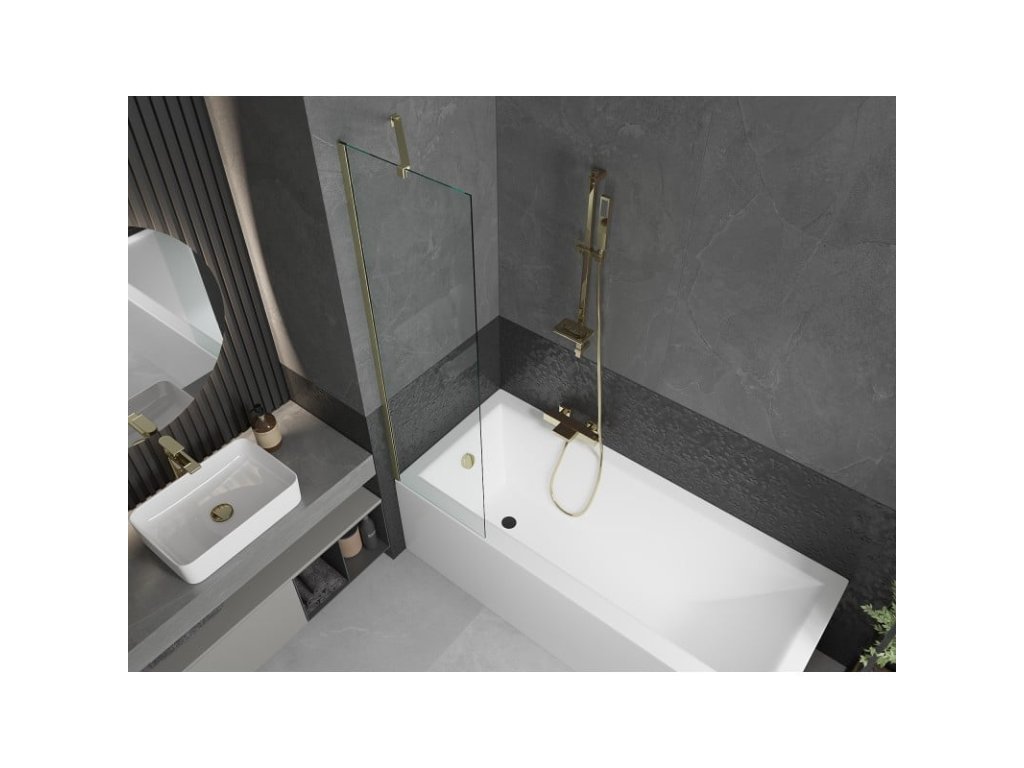 Mexen Next 1-krídlová vaňová zástena 50 x 150 cm, transparentná, brúsené zlato - 895-050-000-00-00-55