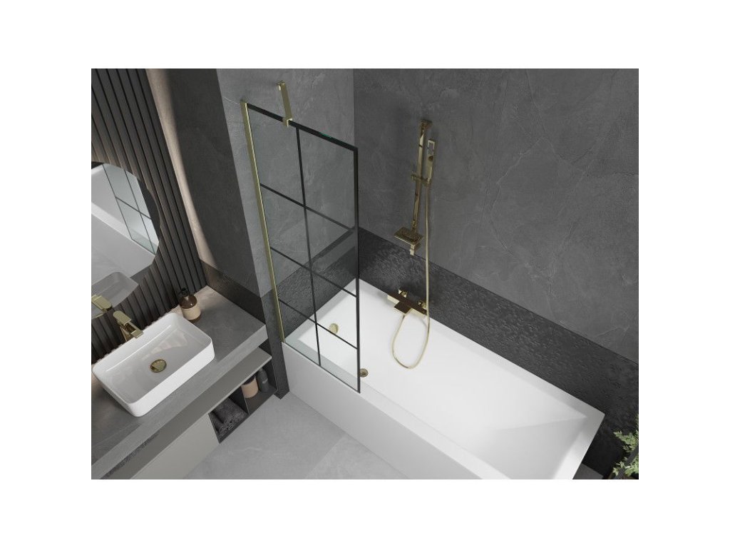 Mexen Next 1-krídlová vaňová zástena 60 x 150 cm, čierny dizajn, brúsené zlato - 895-060-000-00-77-55