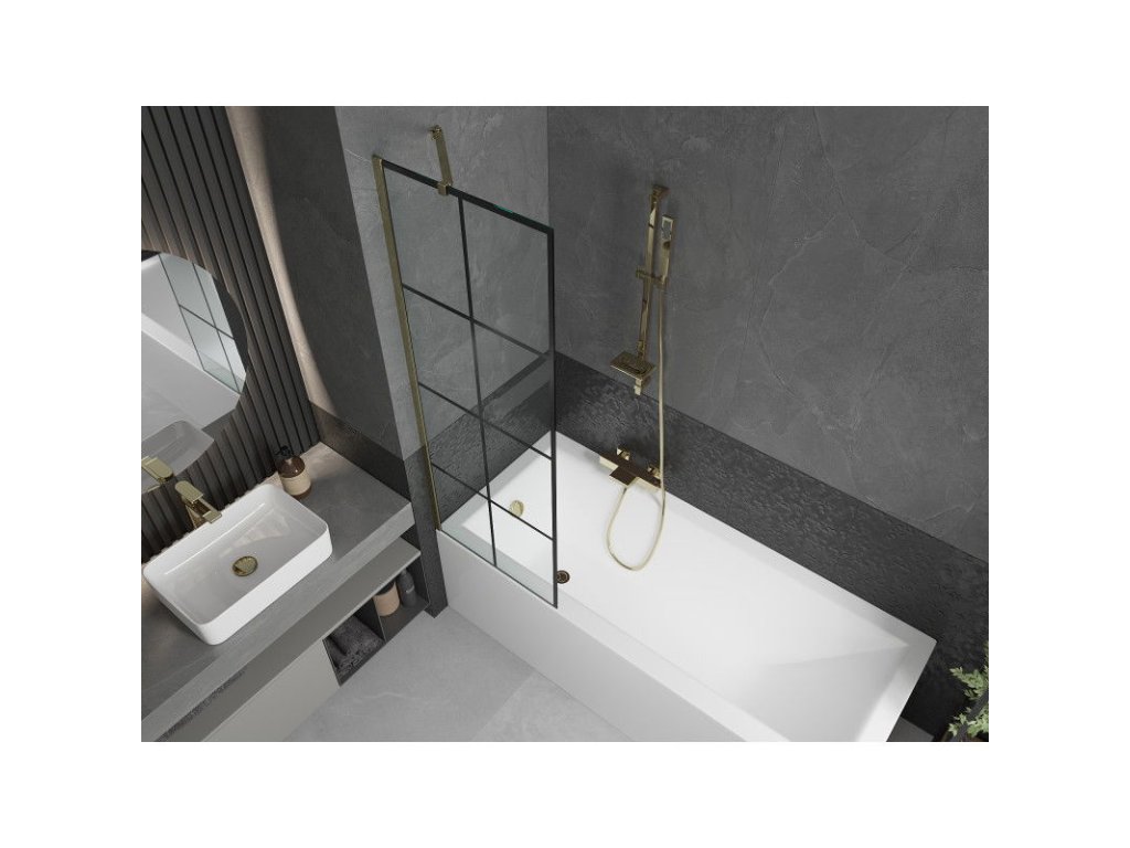 Mexen Next 1-krídlová vaňová zástena 60 x 150 cm, čierny dizajn, zlatá - 895-060-000-00-77-50
