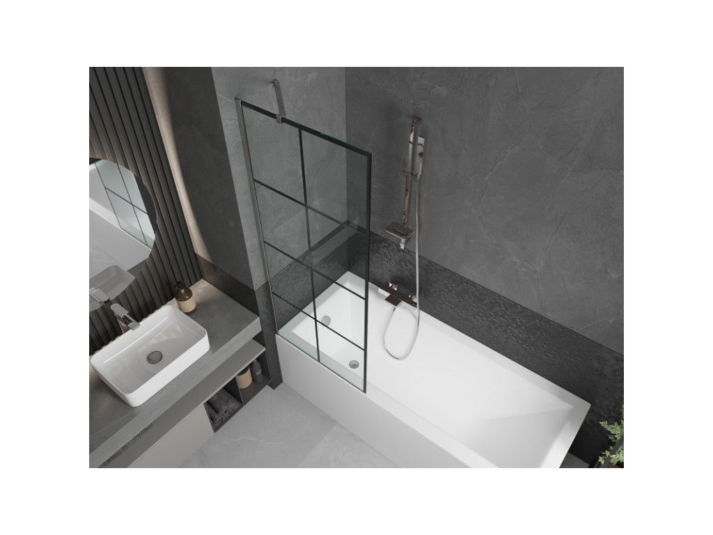 Mexen Next 1-krídlová vaňová zástena 70 x 150 cm, čierny dizajn, chróm - 895-070-000-00-77-01