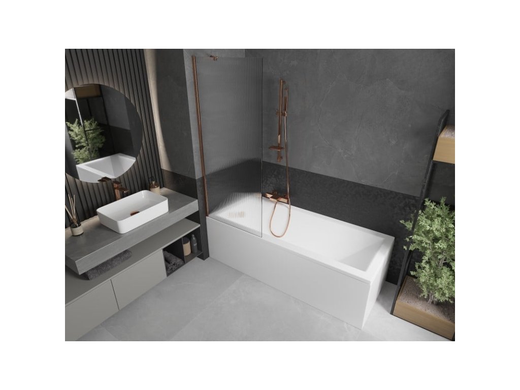 Mexen Next 1-krídlová vaňová zástena 70 x 150 cm, pruhovaná, ružové zlato - 895-070-000-00-09-60