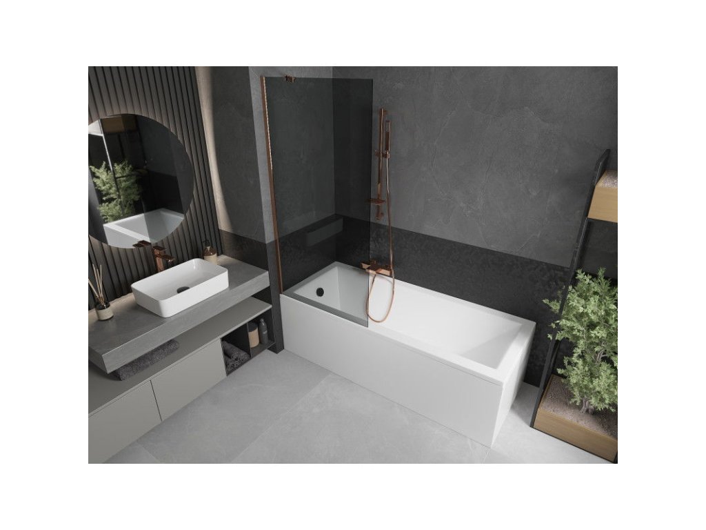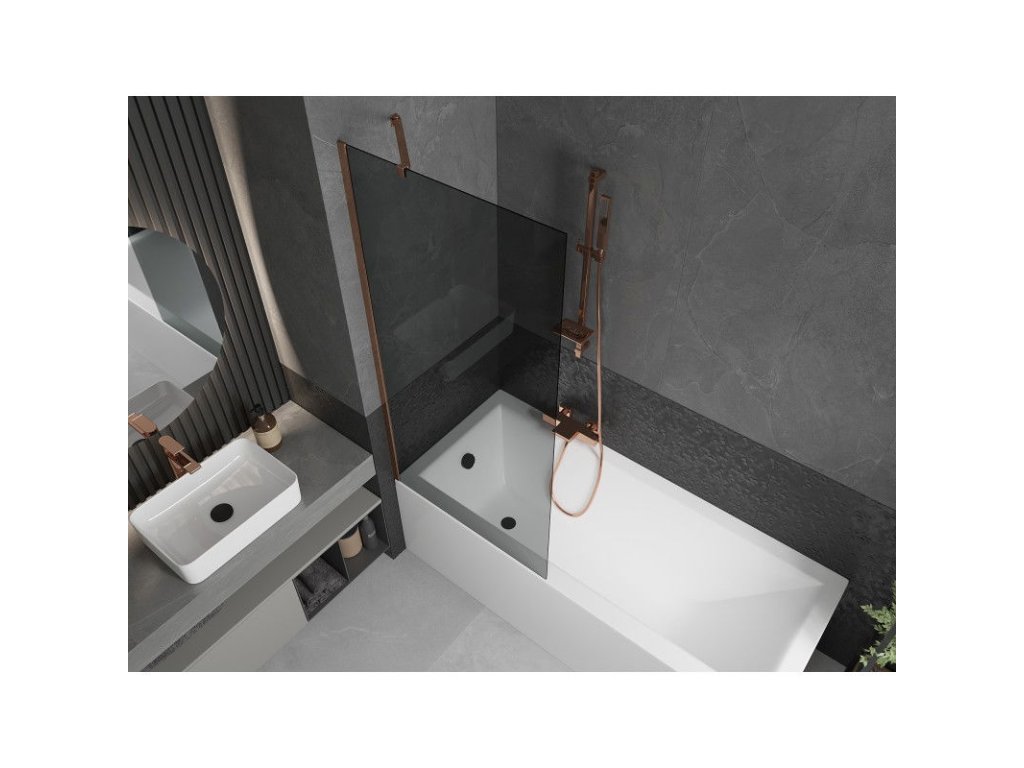 Mexen Next 1-krídlová vaňová zástena 80 x 150 cm, grafit, ružové zlato - 895-080-000-00-40-60