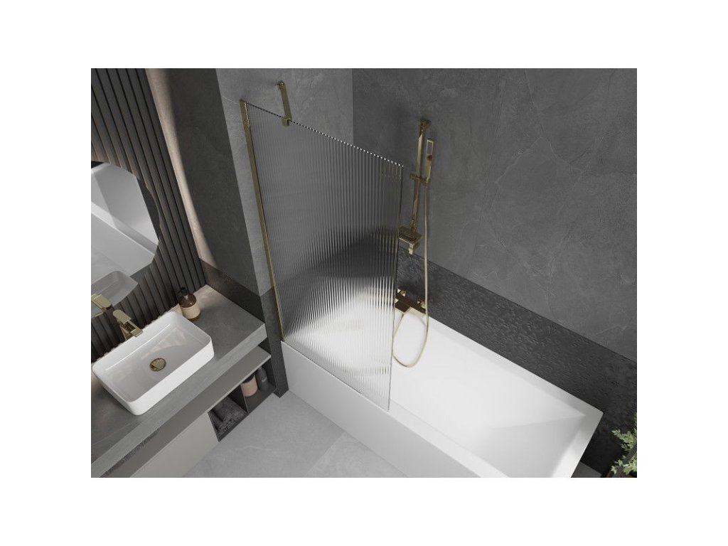 Mexen Next 1-krídlová vaňová zástena 80 x 150 cm, pruhovaná, zlatá - 895-080-000-00-09-50