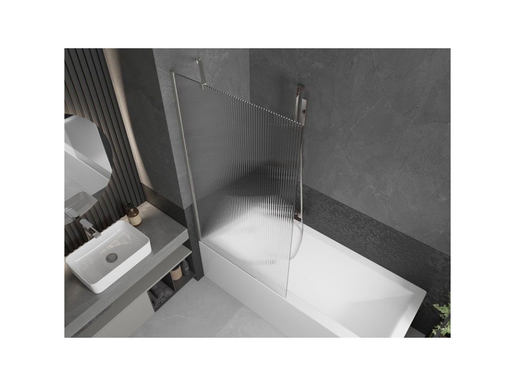 Mexen Next 1-krídlová vaňová zástena 90 x 150 cm, pruhovaná, brúsený nikel - 895-090-000-00-09-97